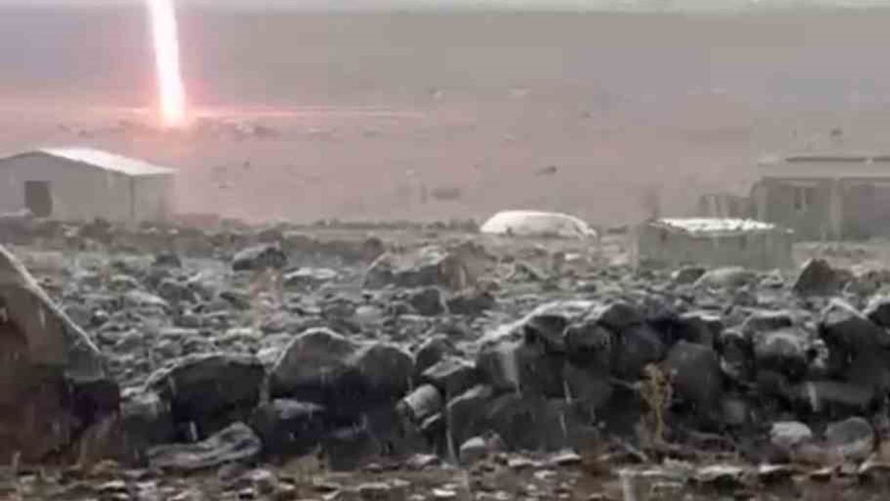 Diyarbakır’ın Ergani ilçesine bağlı Gülpınar köyünde yakın mesafeye yıldırım düşme anı, bir vatandaşın cep telefonu kamerasına yansıdı.