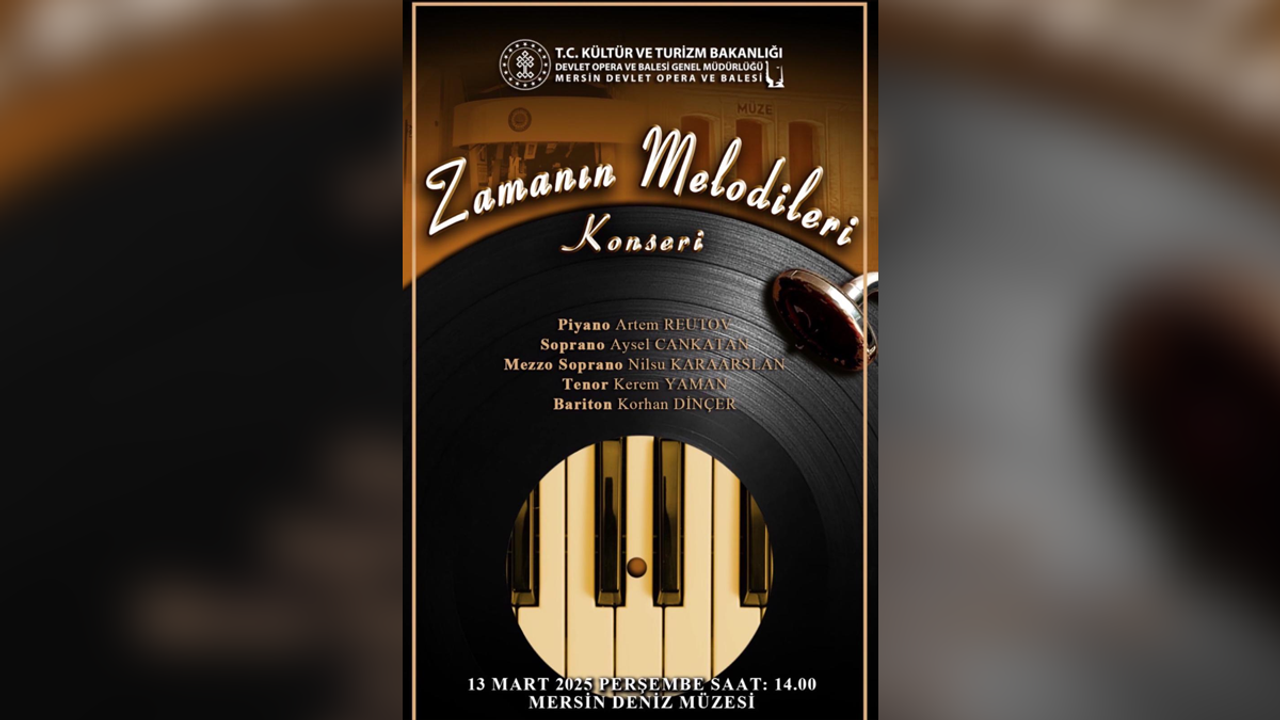 Mersin Devlet Opera ve Balesi, sanatseverleri 13 Mart 2025 tarihinde saat 14:00'te Mersin Deniz Müzesi'nde gerçekleşecek “Zamanın Melodileri” konserine davet ediyor. Deniz Müzesi'nin tarihi atmosferinde ücretsiz olarak düzenlenecek olan konser, klasik müziğin en seçkin eserleriyle müzikseverlere unutulmaz bir deneyim sunacak.