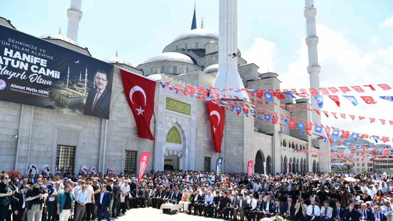 Trabzon’un Ortahisar ilçesi Pazarkapı mevkiinde inşa edilen ve Doğu Karadeniz Bölgesi’nin en büyük camisi olma özelliğini taşıyan Hanife Hatun Camii, düzenlenen görkemli bir törenle ibadete açıldı.