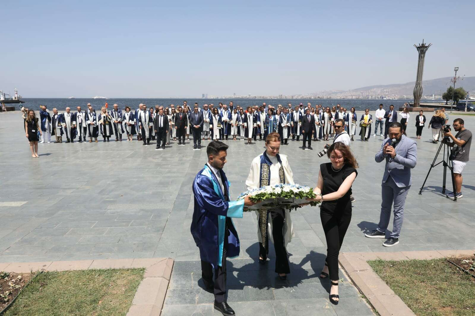 Dokuz Eylül Üniversitesi (DEÜ), kuruluşunun 41’inci Yılı ve Ortak Mezuniyet Törenini bir arada kutladı. Cumhuriyet Meydanı’ndaki Atatürk Anıtı’na çelenk sunma töreniyle başlayan etkinlikler, daha sonra Konak Sabancı Kültür Sarayı’nda devam etti. Etkinliğe; KKTC Lefke Avrupa Üniversitesi Rektörü Prof. Dr. Mehmet Ali Yükselen, Hoca Ahmet YeseviUluslararası Türk-Kazak Üniversitesi Rektörü Prof. Dr. JanarTemirbekova, Özbekistan Urgenç Tıp Akademisi Direktörü Prof. Dr. RuzibaevRaşidYusupovich, Azerbaycan ve Özbekistan’dan gelen Üniversite temsilcileri ile DEÜ Üst Yönetimi, öğrenciler ve aileleri katıldılar.