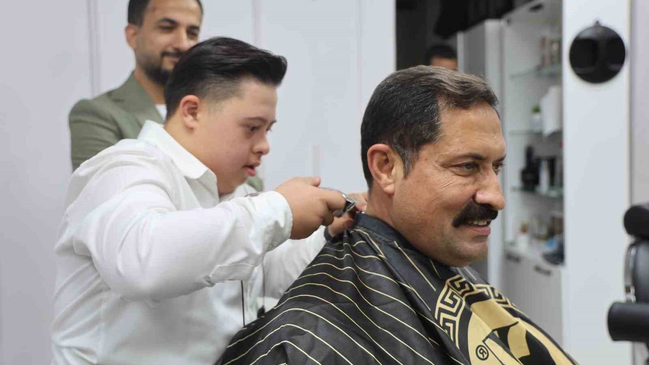Hatay'da down sendromlu kuaför Şükrü Dağlı'nın 3 Aralık Dünya Engelliler Günü'nde ilk müşterisi Vali Mustafa Masatlı oldu. Şükrü ve Vali Masatlı arasında geçen tıraş ücreti diyaloğu ise gülümsetti.