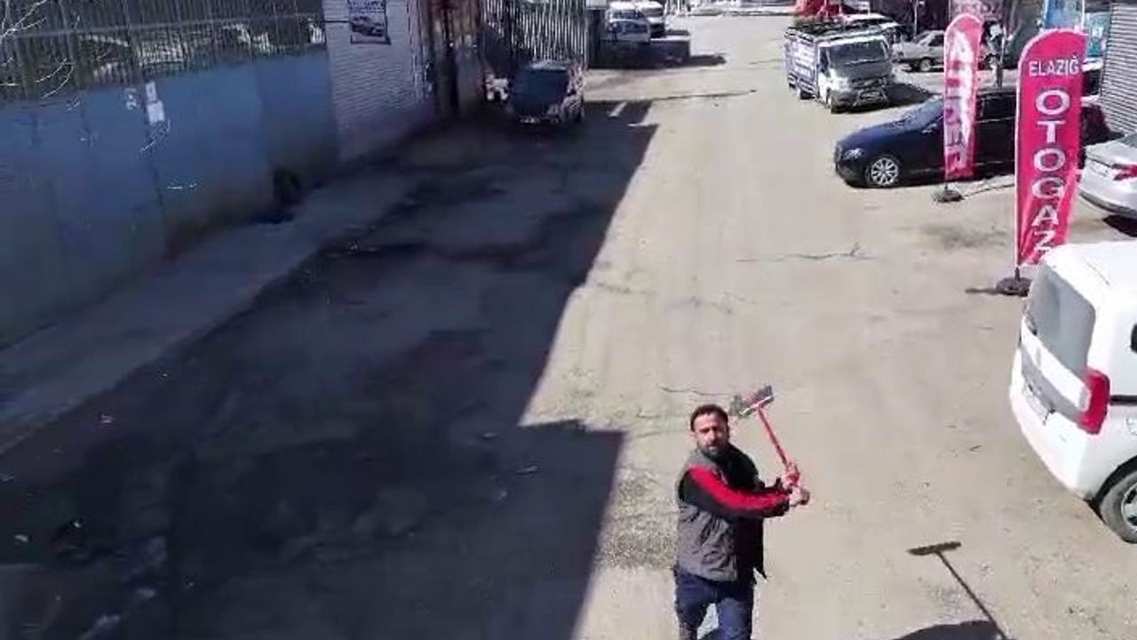 Olay Elazığ merkezde bulunan sanayi sitesi içerisindeki bir iş yerinin önünde meydana geldi. Burada dron kaldıran bir kişi, etrafı çekmeye başladı. Bu sırada dükkanın önünü temizleyen bir çalışan, dronu görünce önce panikledi. Daha sonra elindeki fırça ile dronu kovalamaya çalışan işçi, başarılı olamayınca geri döndü.