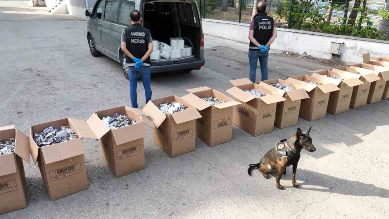 Mersin polisinin tespit edip dronla da takip ettiği bir araç durduruldu, 14 koli içerisinde 38 bin 464 adet sentetik ezca hapı ele geçirildi. Yakalanan şüpheli çıkarıldığı mahkemece tutuklandı.