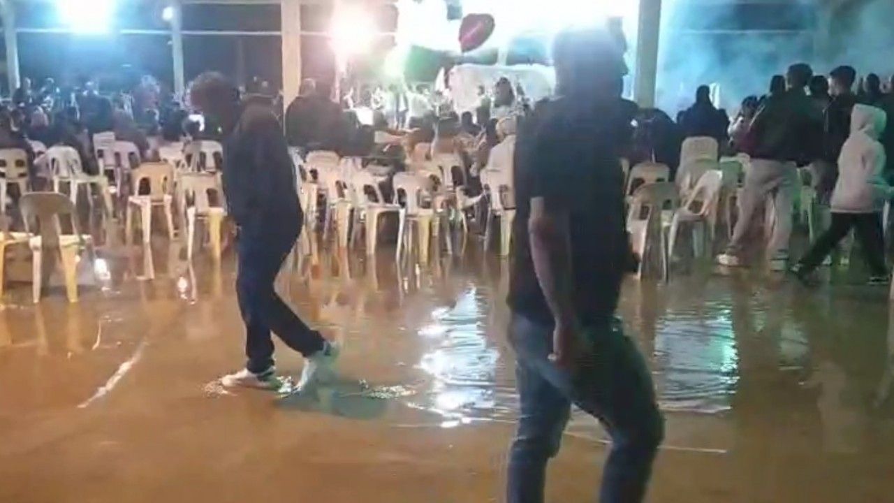 Cep telefonu ile kaydedilen görüntülerde, gelin ve damadın su dolu pistte paçaları sıvamış davetlilerle birlikte eğlenceye devam ettiği görüntüler yer aldı. Bazı misafirler ise sandalyelerin üzerine çıkarak sulardan korunmaya çalıştı. Organizasyon ekibi tarafından düğün alanında suların çekilmesiyle, yağışa rağmen müzik kesilmedi ve eğlence devam etti.