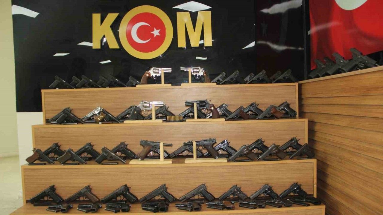 Şanlıurfa’da polis ekipleri tarafından durdurulan otomobilin motor kısmındaki çuvallarda 65 adet ruhsatsız tabanca ile çok sayıda şarjör ve mermi çıktı. Ele geçirilenler arasında İkinci Dünya Savaşı’nda kullanılan silahlar da bulunuyor.