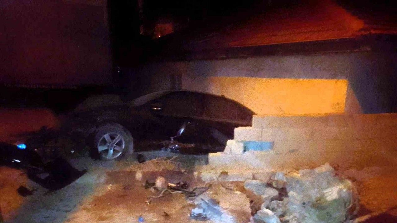 Denizli’nin Merkezefendi ilçesinde duvarı yıkarak evin bahçesine giren lüks otomobilde büyük maddi hasar oluşurken, araçta bulunan 2 kişi kazadan yara almadan kurtuldu.