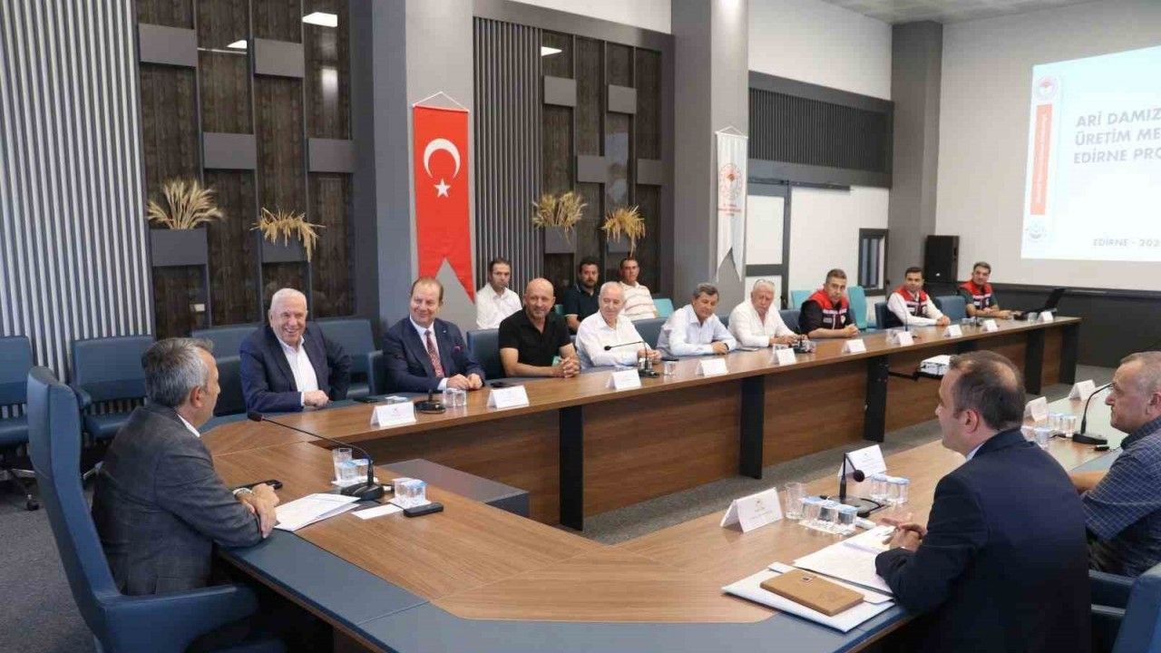 Edirne’de dün yapılan toplantıda uygulanacak olan "Ari Damızlık Düve Üretim Merkezi Edirne Projesi" için dün Vali Yunus Sezer başkanlığında değerlendirme ve istişare toplantısı düzenlendi.