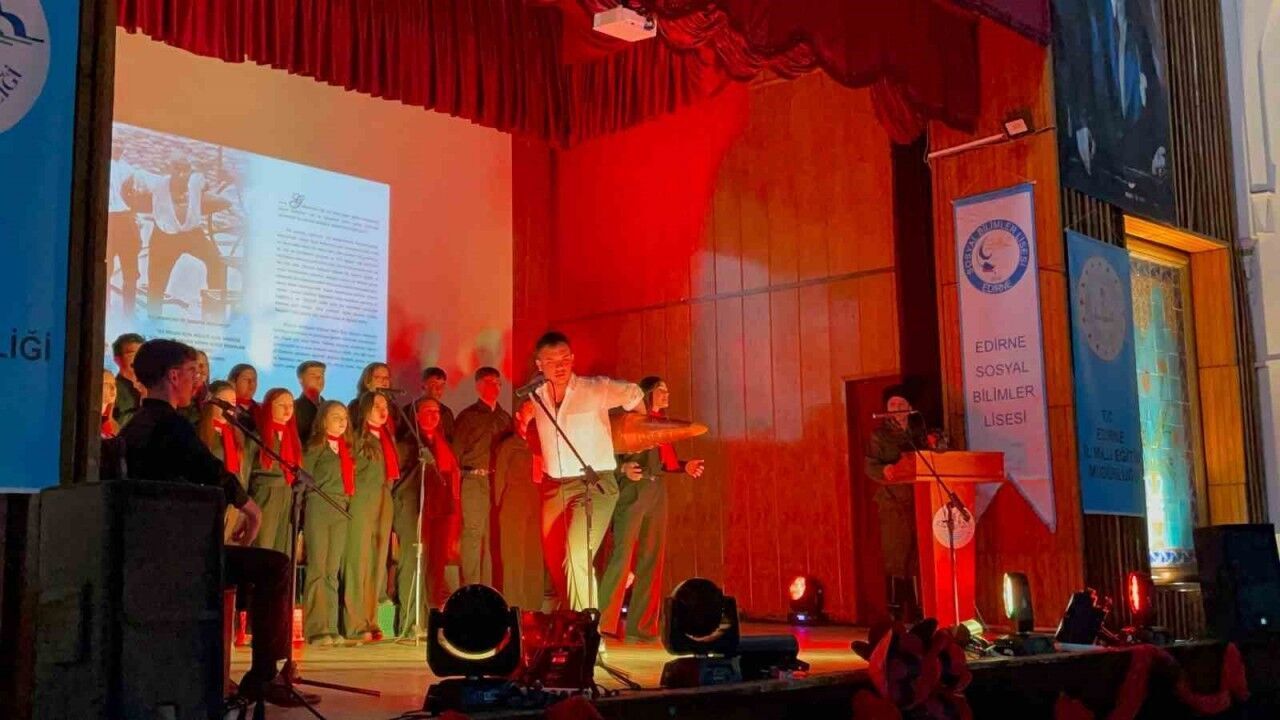 Edirne’de 18 Mart Çanakkale Zaferi’nin 110. Yılı ve Şehitleri Anma Günü dolayısıyla Sosyal Bilimler Lisesi öğrencileri tarafından düzenlenen program ilgiyle izlendi.