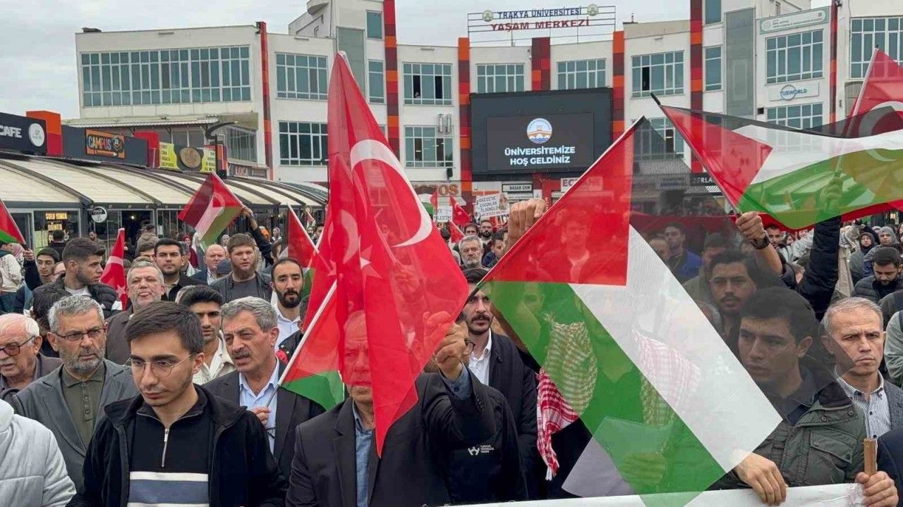 İsrail’in Gazze’ye yönelik saldırılarını protesto etmek amacıyla bir araya gelen Trakya Üniversitesi öğrencileri, "Gazze için Umut, İnsanlık için Onur Yürüyüşü" düzenledi.