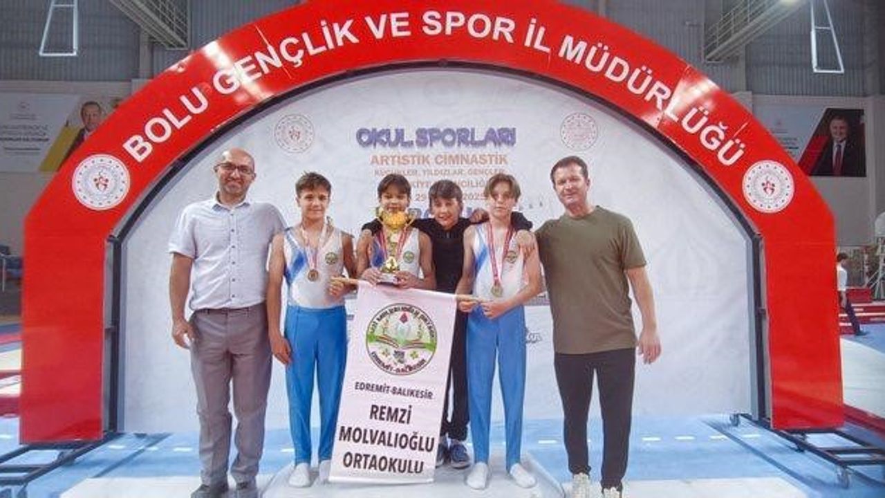 Balıkesir’in Edremit ilçesindeki Remzi Molvalıoğlu Ortaokulu Cimnastik Takımı, Türkiye Şampiyonu oldu.