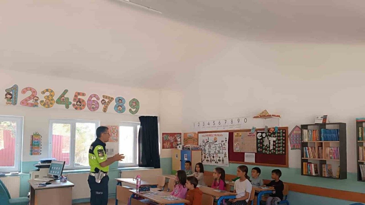 Isparta’nın Eğirdir ilçesine bağlı Tepeli Köyü İlkokulu’nda Jandarma Trafik Timi tarafından düzenlenen eğitimde 12 öğrenciye trafik kuralları anlatıldı.