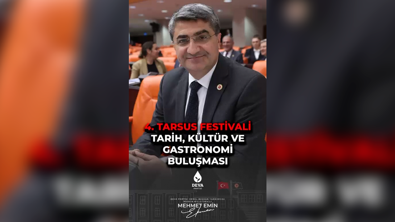 DEVA Partisi Genel Başkan Yardımcısı ve Mersin Milletvekili Mehmet Emin Ekmen, Türkiye Büyük Millet Meclisi Genel Kurulu’nda yaptığı konuşmada Mersin milletvekillerine ve vatandaşlara çağrıda bulunarak, 4. Uluslararası Tarsus Festivaline katılım davetinde bulundu.