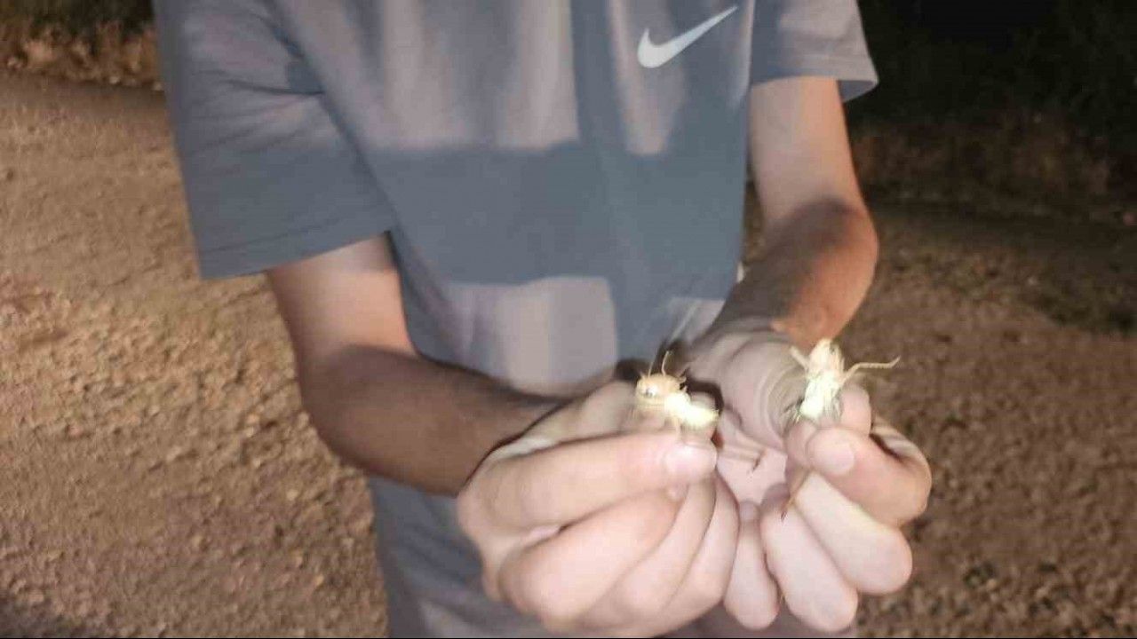 Elazığ’ın Palu ilçesinde yüzlerce çekirge yola savruldu. O anlar cep telefonu ile kaydedilirken vatandaşlar paniğe kapıldı.