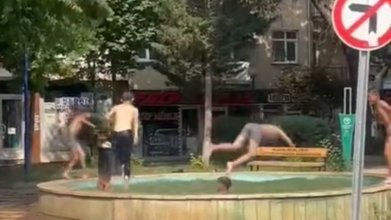 Uzun süredir serin havanın etkili olduğu Elazığ’da, son günlerde sıcaklıklar artmaya başladı. Havaların ısınmasıyla birlikte 6 çocuk merkez Ataşehir Mahallesi’nde bulunan bir süs havuzuna akın etti. Çocuklar havuza girerek bir yandan serinleyip bir yandan eğlenirken, o anlar bir vatandaş tarafından görüntülendi.
