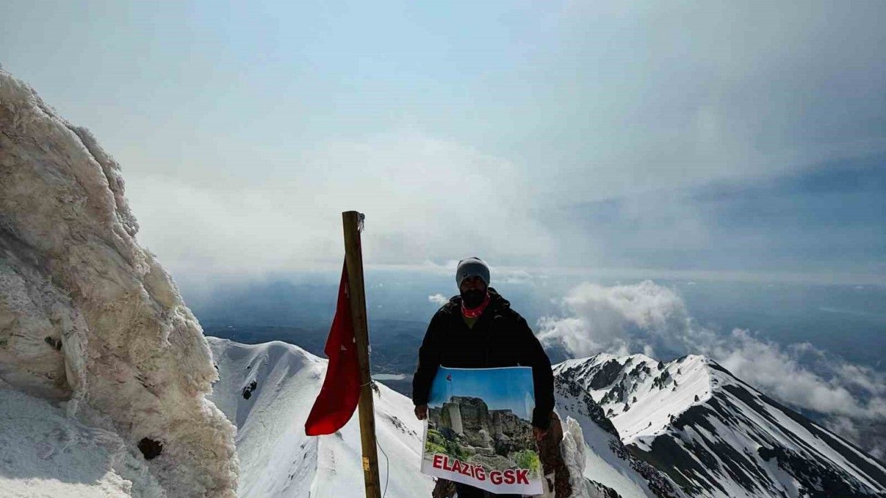 Elazığlı sporcu Tarık Trap, 3 bin 917 metre yüksekliğindeki Erciyes Dağı zirvesine tırmandı.