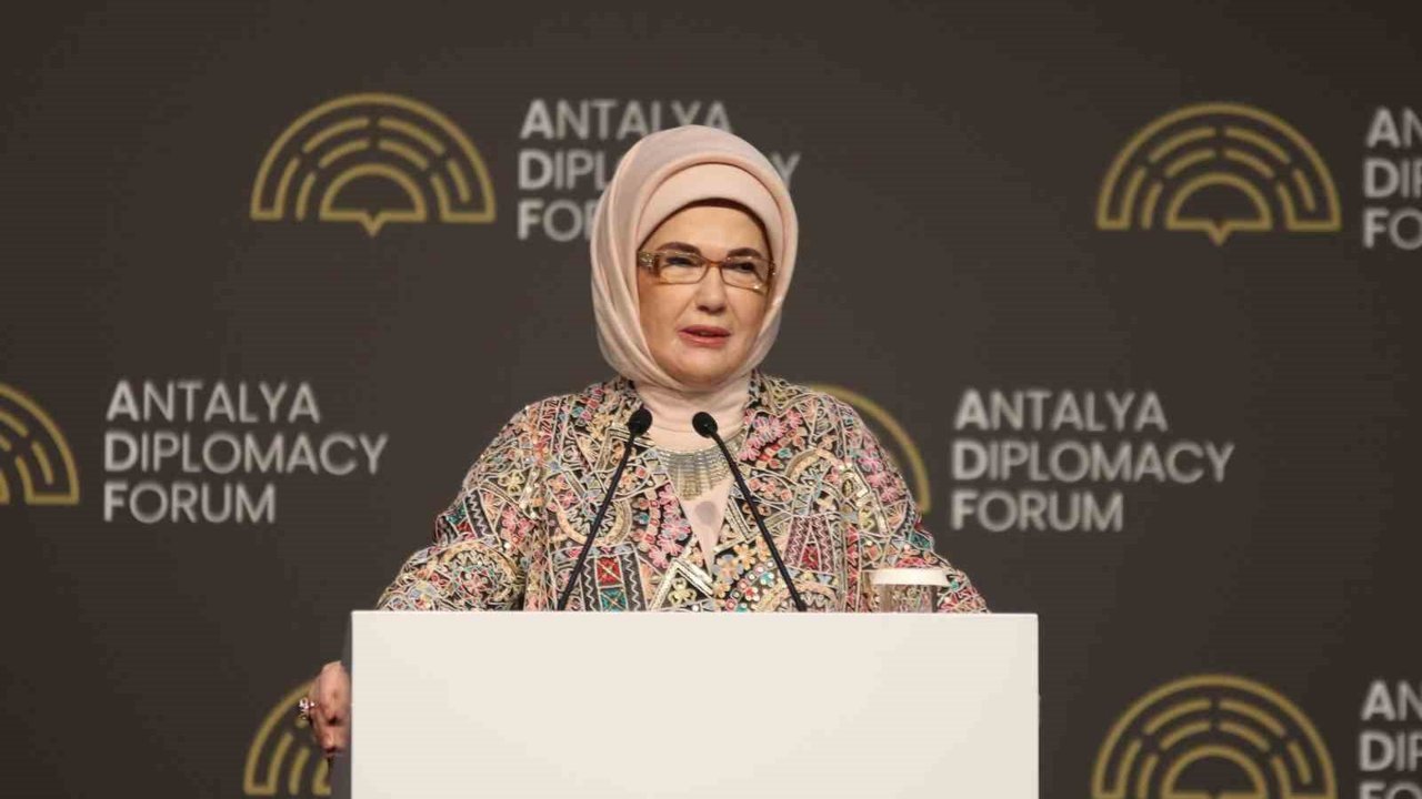 Emine Erdoğan, Antalya Diplomasi Forumu'nda yaptığı konuşmada Filistin ve Gazze için uluslararası topluma destek çağrısında bulunurken, Şanlıurfa ve Kahramanmaraş'ta yaşanan okul saldırılarında hayatını kaybeden çocukların ailelerine başsağlığı diledi. Günümüz çocuklarının içine sürüklendiği şiddet sarmalına terk edilemeyeceğini vurgulayan Erdoğan, 'Çocuklarımız için şiddeti özendiren ve sıradanlaştıran ne varsa, hangi mecrada ve ne kılıkta olursa olsun kararlılıkla mücadele etmek zorundayız' dedi.