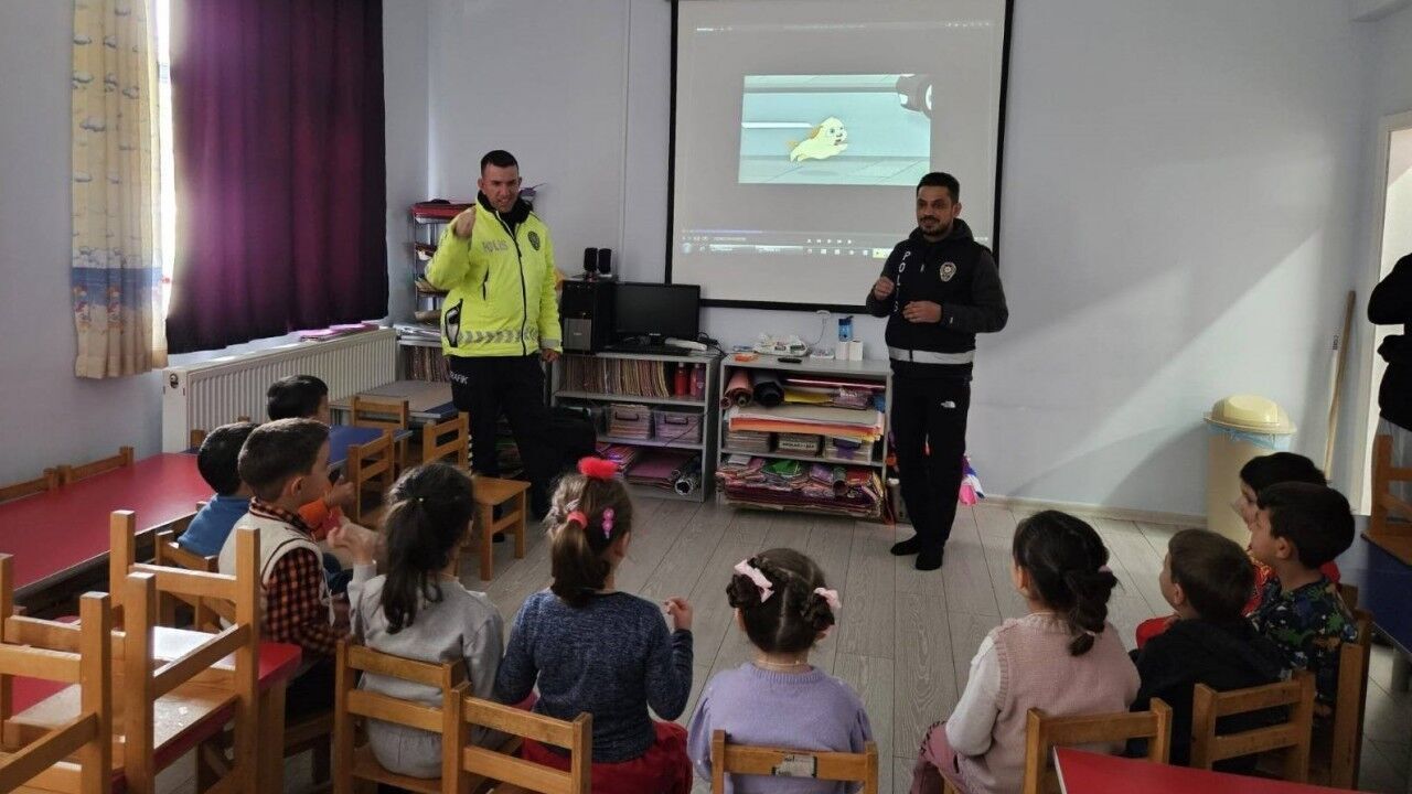 Erzincan’da polis ekiplerice anaokullarında 112 ihbar hattı, trafik güvenliği ve genel güvenlik konularında eğitim verildi.