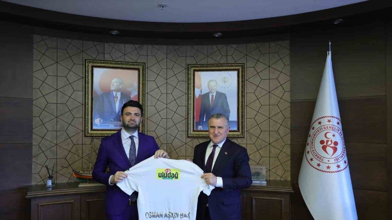 Bursaspor Başkanı Enes Çelik, Gençlik ve Spor Bakanı Osman Aşkın Bak’ı ziyaret ederek altyapıya verilen destekler için teşekkür etti.
