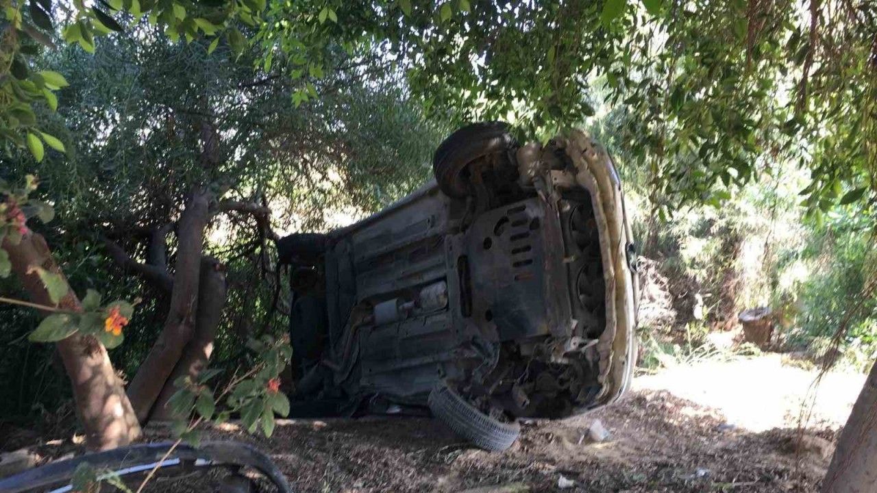 Mersin’in Erdemli ilçesinde bahçeye savrulan otomobilin sürücüsü yaralandı.