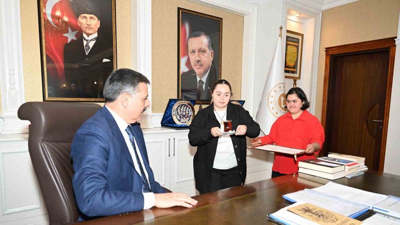 Erzurum Valiliği’nde yürek ısıtan farkındalık uygulaması takdir topladı. Çağla Okyay ve Elif Ademoğlu isimli down sendromlu özel çocuklar, Erzurum Valiliği’nde göreve başladı.
