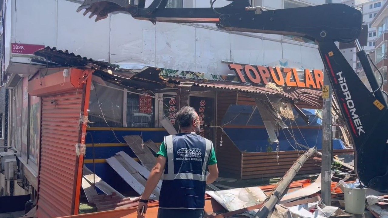 İstanbul Esenyurt’ta zabıta ve market çalışanları arasında bıçaklı kavgaya neden olan manav reyonu kepçeyle yıkıldı. İş yeri sahipleri ile zabıta ekipleri arasında ufak çaplı gerginlik yaşanırken, çevik kuvvet polislerinin müdahalesiyle yıkım tamamlandı.
