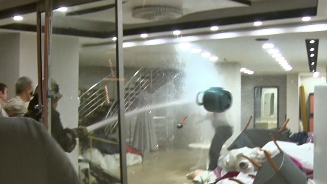 Belirtilen adrese gelen ekipler, kolonya ve dezenfektanı gelinliklerin üzerine döküp elinde çakmakla gezen Bahadır T.’yi uzun süre ikna etmeye çalıştı. Eşinin çocuklarını göstermediğini ve onların velayetini almak istediğini belirten Bahadır T. yine eşinin gelinlik mağazasının sattığını ileri sürüp eylemi bu yüzden yaptığını söyledi. Ekiplerin tüm çabalarına rağmen gelinlikleri parçalamaya devam edip içerideki eşyalara da zarar veren Bahadır T. bir süre sonra ise üst kattan aldığı mutfak tüpünü getirdi.