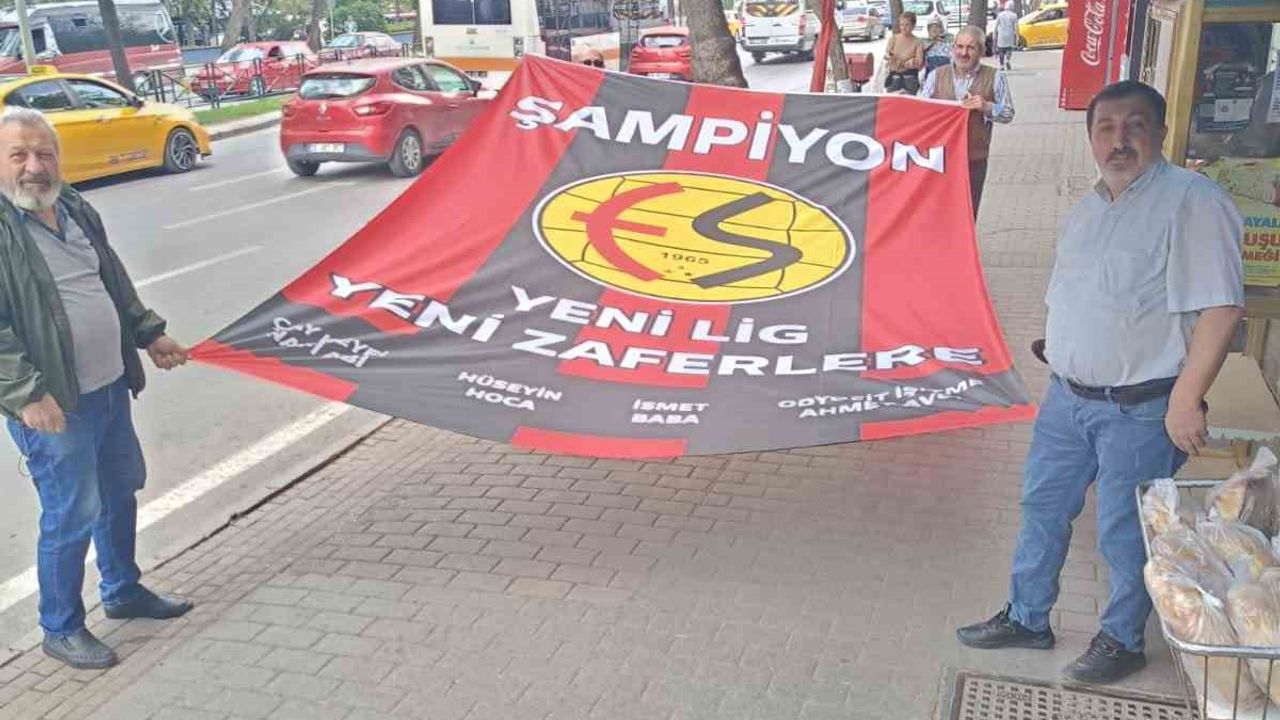 Bölgesel Amatör Lig (BAL) 6. Grup’ta şampiyon olan Eskişehirspor, 3. Lig’e yükseldi. Eskişehirspor’un şampiyonluğunu ilan ettiği günden bu yana kentte kutlama havası yaşanırken, Atatürk Bulvarı üzerindeki esnaf bir araya gelerek dev Eskişehirspor bayrağı yaptırdı. Siyah-kırmızılı ekibin şampiyon olmasıyla büyük sevinç yaşayan Nafi Demirel, Ahmet Avcı, Hüseyin Hoca ve İsmet Sarıkaya, ortaklaşa yaptırdıkları dev bayrağı cadde üzerindeki müsait bir yere astırmayı planladıklarını belirtti.