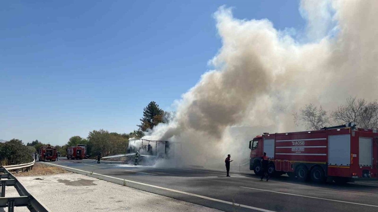 Adana’da otoyolda ev eşyası yüklü tır alev alev yandı, bölgede kilometrelerce kuyruk oluştu.