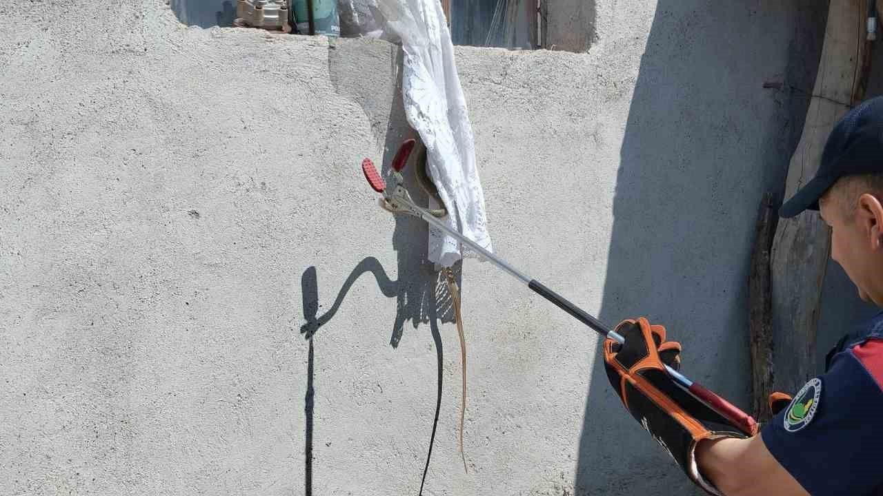 Çorum’un Sungurlu ilçesinde bir eve giren yılan, itfaiye ekipleri tarafından çıkarılarak doğaya salındı.