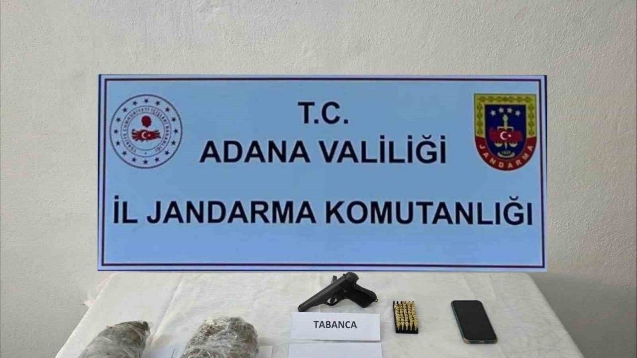 Adana’da jandarma ekipleri bir eve düzenlediği operasyonda 1 kilogram esrar ile ruhsatsız tabanca ele geçirildi. Gözaltına alınan bir şüpheli tutuklanıp cezaevine gönderildi.