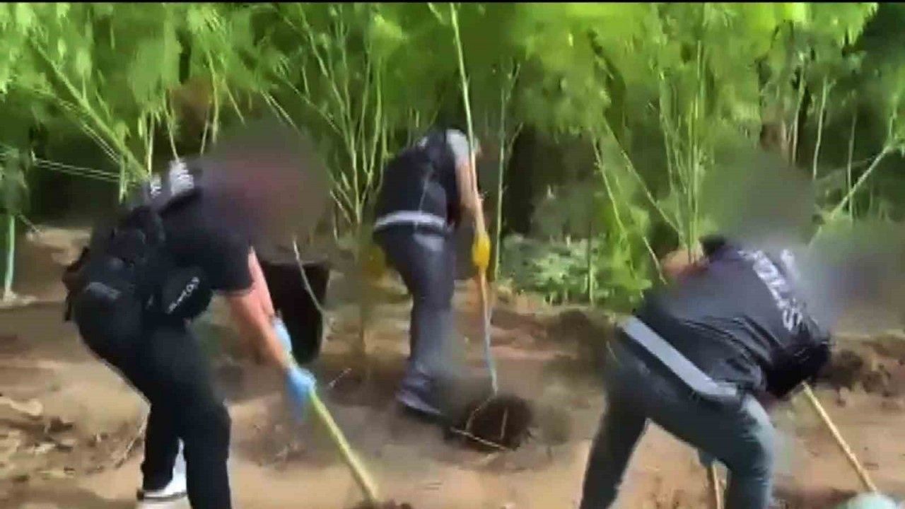 Ekiplerin Karabörtlen Mahallesinde belirlenen adrese yaptıkları operasyonda 3 şüpheli şahıs yakalandı. Şüpheli şahısların ikametinde ve bahçesinde yapılan aramada; 695 adet kenevir bitkisi, 3 parça halinde toplamda 20 kilo 600 gram esrar maddesi, 5 gram kenevir tohumu, 2 adet çalışır vaziyette hassas terazi, ruhsatsız pompalı tüfek, ruhsatsız av tüfeği, kuru sıkı tabanca, 15 adet kurusıkı tabanca fişeği, 37 adet av tüfeği fişeği, 2 adet alarmlı IP güvenlik kamerası, 2 bidon halinde toplamda 10 litre sıvı gübre, 3 adet kamuflaj örtü ve 4 adet güvenlik sensörü alarm ele geçirildi.