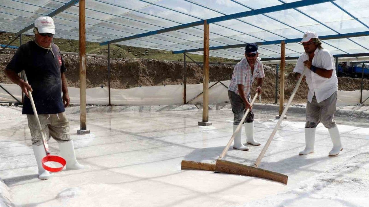 Erzincan’ın Kemah ilçesindeki tesislerde 3 bin yıllık geleneklerle, sera görünümlü havuzlara su ekip tuz üretiyorlar.