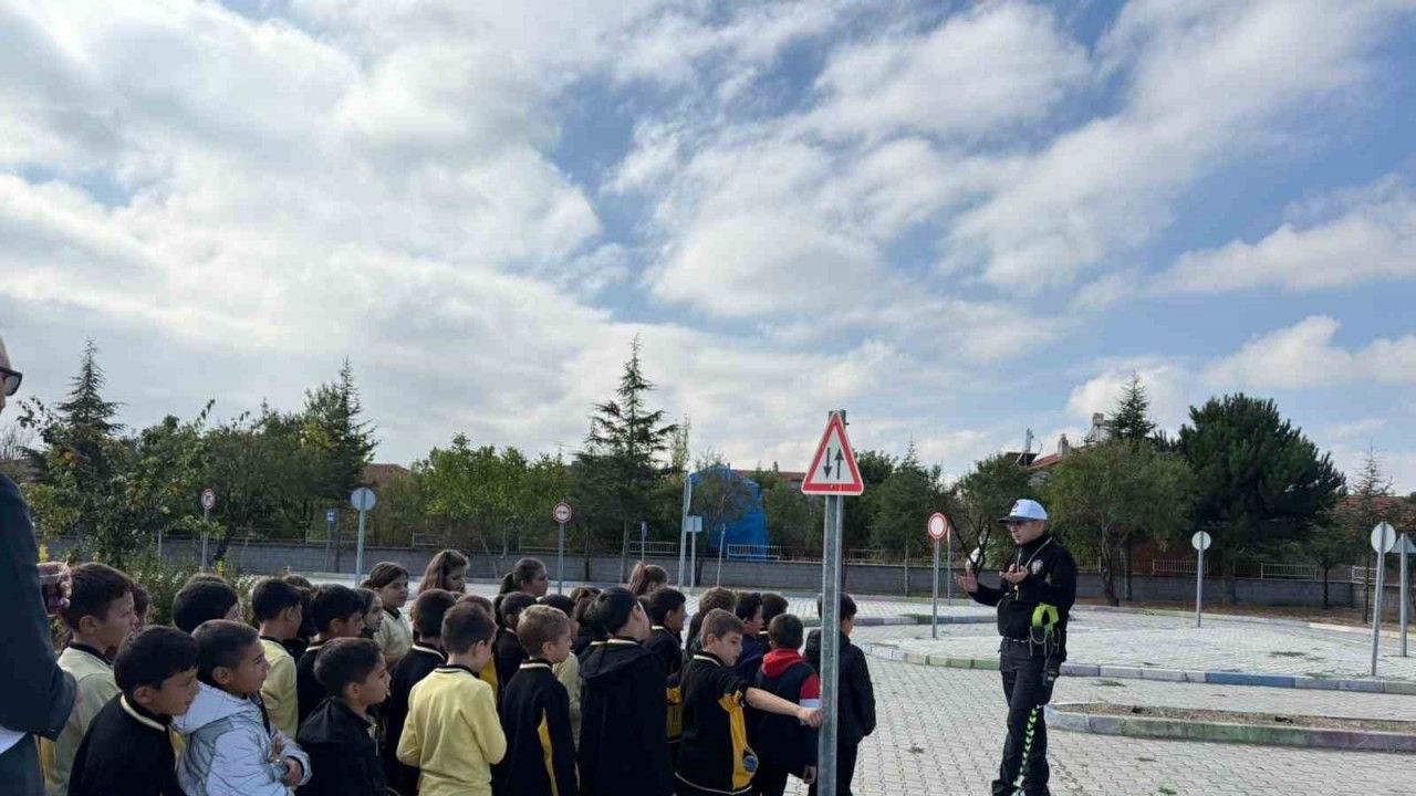 Afyonkarahisar’da polis ekiplerince Fatih Ortaokulu’nda 75 öğrenciye ’Trafik Güvenliği’ konulu uygulamalı eğitim verildi.