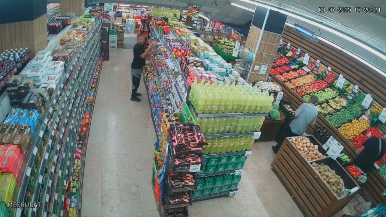 İstanbul Fatih’te bir şahıs markette gezdiği esnada reyonda bulunan çikolataları çaldı. Hırsızlık anı ise marketin güvenlik kamerasına yansıdı.