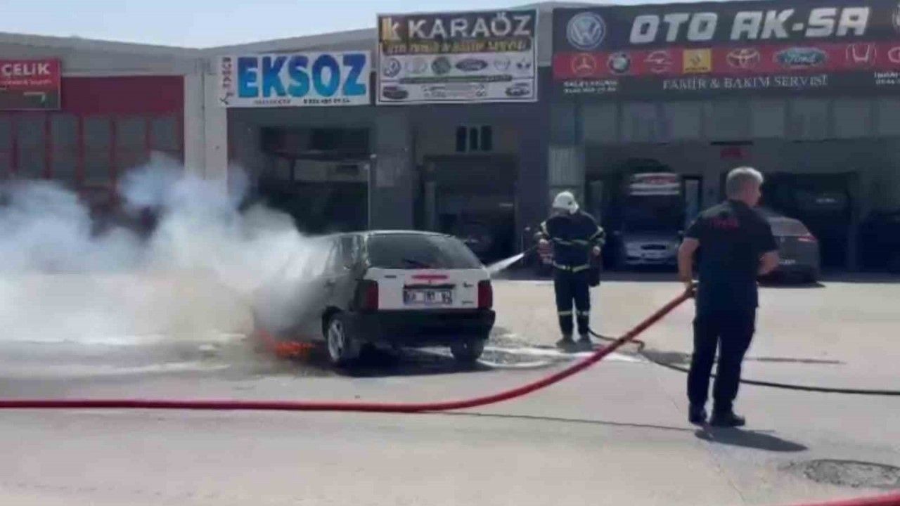 Aksaray’da Fiat marka otomobil egzozuna kaynak yapıldığı esnada alev alarak yandı. Alev topuna dönen otomobil itfaiye ekiplerince söndürüldü.