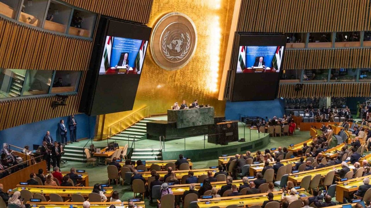 Filistin Devlet Başkanı Mahmud Abbas, BM Genel Merkezi’nde düzenlenen "Filistin Meselesine Çözüm Bulunması ve İki Devletli Çözümün Hayata Geçirilmesi Konulu Yüksek Düzeyli Uluslararası Konferansı"na ABD’nin vizesini iptal etmesi nedeniyle video mesaj yoluyla katıldı. Abbas, Filistin yönetiminin şeffaflığa ve hukukun üstünlüğünü güçlendiren kapsamlı bir reform gündemine bağlılığını yeniden teyit ederek, Gazze Şeridi’ndeki savaşın sona ermesinden sonraki bir yıl içinde devlet başkanlığı ve parlamento seçimleri düzenleyeceğine söz verdi. Otoriteden devlet yapılanmasına geçişi sağlamak için geçici bir anayasa taslağı hazırlayacağına söz veren Abbas, bu çerçevenin Filistin Kurtuluş Örgütü’nün siyasi programına ve uluslararası meşruiyete bağlı olmayan hiçbir parti veya kişiyi kapsamayacağını ve uluslararası gözetim altında olacağını açıkladı. Abbas, geçtiğimiz temmuz ayında BM Genel Kurulu’nda ezici çoğunlukla kabul edilen tarihi New York Deklarasyonu’nun kabulü için şükranlarını sunduğunu belirterek, bunu insani felaketi sona erdirmek, uluslararası meşruiyet ve Arap Barış Girişimi doğrultusunda işgali sona erdirmek ve başkenti Doğu Kudüs’ü olan, İsrail ile barış, güvenlik ve iyi komşuluk içinde yan yana yaşayan bağımsız bir Filistin Devleti kurmak için atılmış kararlı bir adım olarak nitelendirdi.