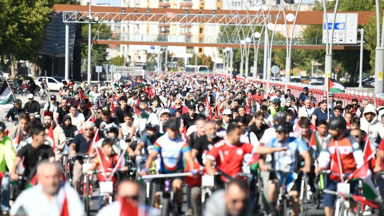 Cumhuriyet Meydanı’ndan başlayan "Kayseri’den Filistin’e Küresel Sumud Filosu’na Destek" bisiklet turu, Recep Tayyip Erdoğan Millet Bahçesi Esenyurt Kapı’da tamamlanırken etkinliğe gencinden yaşlısına çok sayıda vatandaş katılarak Küresel Sumud Filosu’na ve Filistin’e destek mesajı verdi.