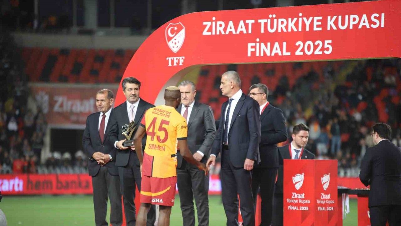 Sarı-kırmızıların kupa zaferiyle sonuçlanan karşılaşmanın ardından spor yazarların oylarıyla maçın oyuncusu 2 golle yıldızlaşan Victor Osimhen aldı. Bu sezon Türkiye’de attığı toplam 35 golle de en çok atan yabancı oyuncu rekorunu kıran yıldız golcü Osimhen’e, kupa töreni öncesi plaket takdim edildi.