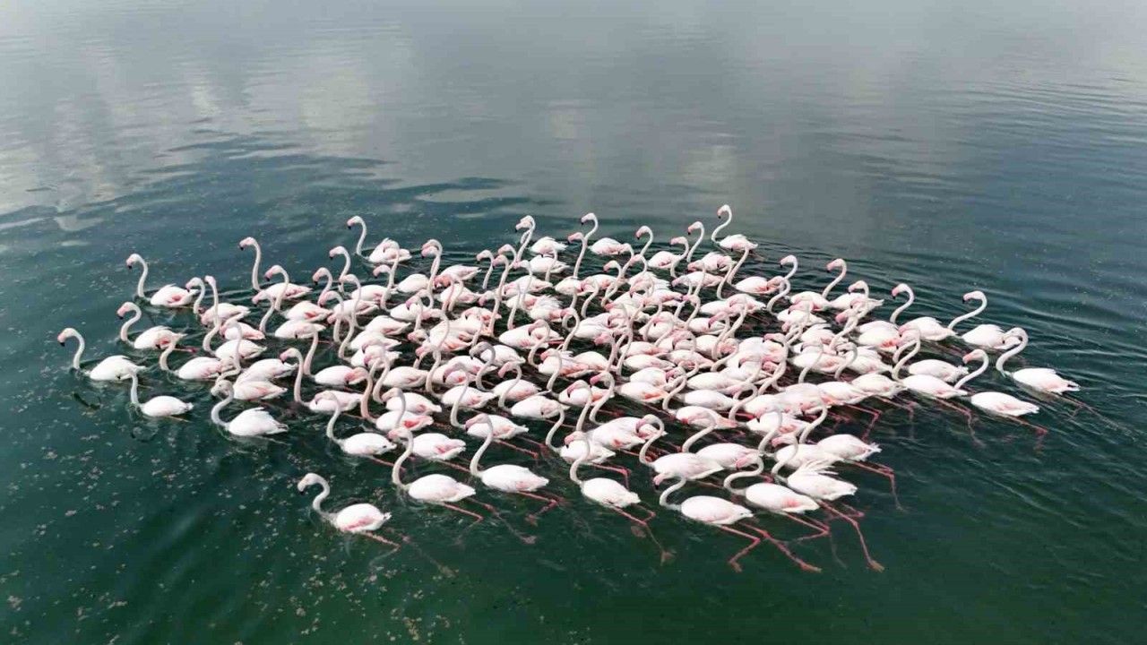 Bitlis’in Adilcevaz ilçesine bağlı Akçıra ve Yarımada köylerinin Van Gölü sahilleri, flamingolara ev sahipliği yapıyor.