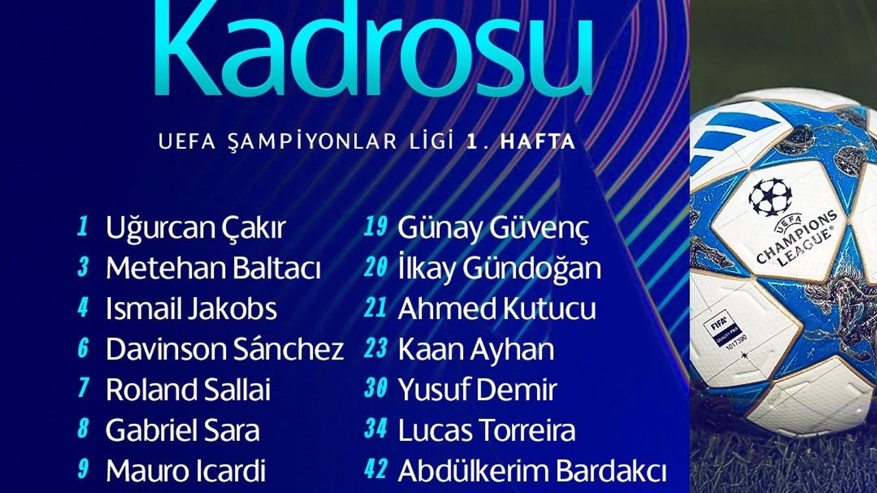 "Uğurcan Çakır, Metehan Baltacı, Ismail Jakobs, Davinson Sanchez, Roland Sallai, Gabriel Sara, Leroy Sane, Yunus Akgün, Batuhan Şen, Eren Elmalı, Berkan Kutlu, Günay Güvenç, İlkay Gündoğan, Ahmed Kutucu, Kaan Ayhan, Yusuf Demir, Lucas Torreira, Abdülkerim Bardakcı, Barış Alper Yılmaz, Wilfried Singo, Arda Ünyay ve Mario Lemina"