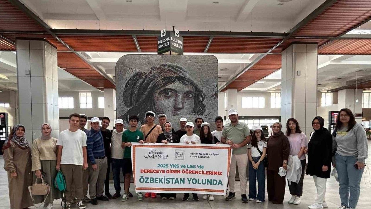 Liselere Geçiş Sınavı’nda (LGS) ve Yükseköğretim Kurumları Sınavı’nda (YKS) Türkiye genelinde dereceye giren öğrenciler ödüllendiriliyor. Bu kapsamda Büyükşehir Belediyesi tarafından organize edilen programlarda Gaziantep Büyükşehir Belediye Başkanı Fatma Şahin’in öğrencilere söz verdiği Özbekistan kültür gezisi için kafile yola çıktı.