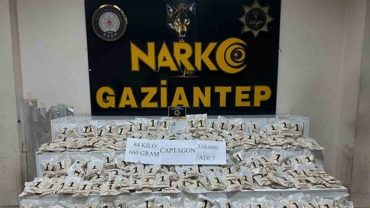 Gaziantep Emniyet Müdürlüğü Narkotik Suçlarla Mücadele Şube Müdürlüğü ekipleri ve Cumhuriyet Başsavcılığı koordinesinde narkotik operasyonu yapıldı. Operasyon çerçevesinde, kent çıkışında yapılan yol kontrolünde şüpheli bir araç durduruldu. Araçta, hassas burunlu dedektör köpek destekli aramalarda çuvallara zulalanmış halde 510 bin adet uyuşturucu captagon hap ele geçirildi. Olayla ilgili 1 şüpheli şahıs gözaltına alındı.