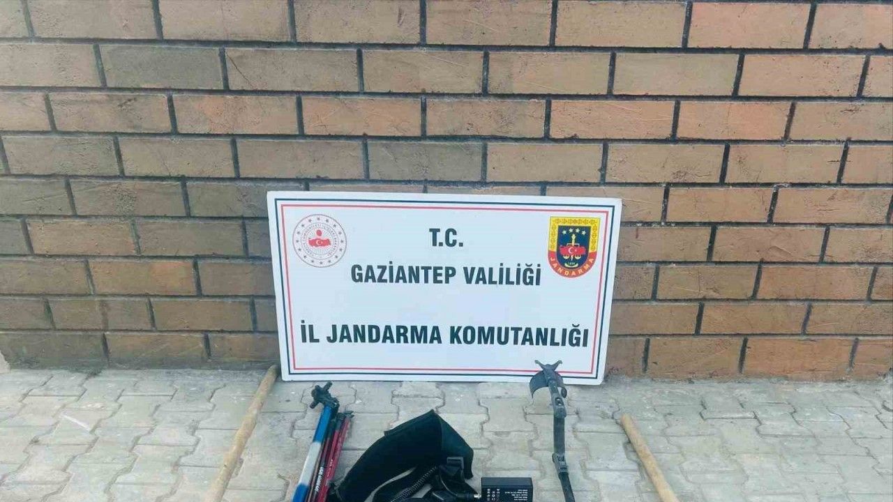 Gaziantep İl Jandarma Komutanlığı ekipleri ve Cumhuriyet Başsavcılığı koordinesinde Şahinbey ve Araban ilçelerinde tarihi eser kaçakçılığının önlenmesine yönelik operasyon düzenlendi. Operasyonda, define bulmak amacıyla izinsiz kazı yaptığı tespit edilen C.E., M.R.E.,E.Y., M.R.T., M.T., A.D., B.H., N.Ş., ve B.Ş. isimli şüpheliler kaçmaya çalıştıkları esnada suçta kullandıkları detektör ve kazı malzemeleri ile birlikte suçüstü yakalandı. Operasyon kapsamında, 2 adet dedektör ve kumandası, 3 adet kazma, 3 adet kürek, 2 adet matkap ucu, 1 adet darbeli hilti, 1 adet ispiral makinesi, 1 adet matkap, 2 adet emniyet kemeri, 1 adet demir çubuk, 2 adet çelik halat, 3 adet seyyar uzatma kablosu ele geçirildi.