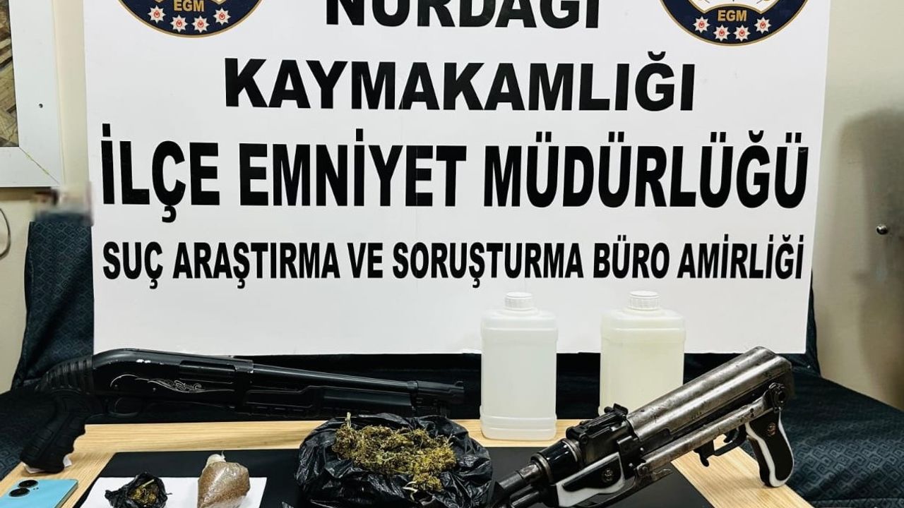 GAZİANTEP(İHA) – Gaziantep’in Nurdağı ilçesinde polis ekiplerince düzenlenen operasyonda silah ve çeşitli miktarlarda uyuşturucu madde ele geçirildi, 1 şüpheli gözaltına alındı.