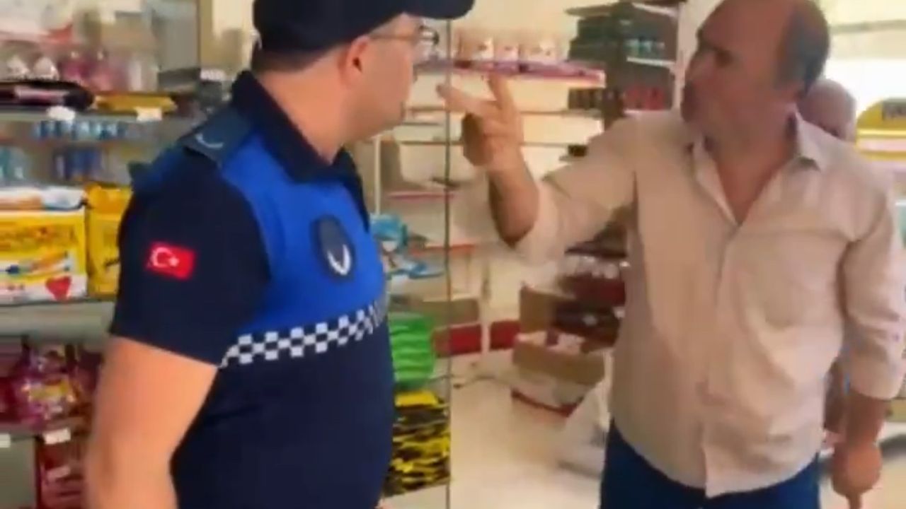 Bu sırada duruma tepki gösteren market işletmecisi şahıs, zabıta ekibini önce kovdu, sonra fiziki müdahale ile dışarı attı, ardından da "Şerefime seni vururum, seni vururum, silahımla vurmazsam namussuzum" diyerek tehdit etti. O anlar ise bir diğer zabıta memuru tarafından cep telefonu ile kaydedildi