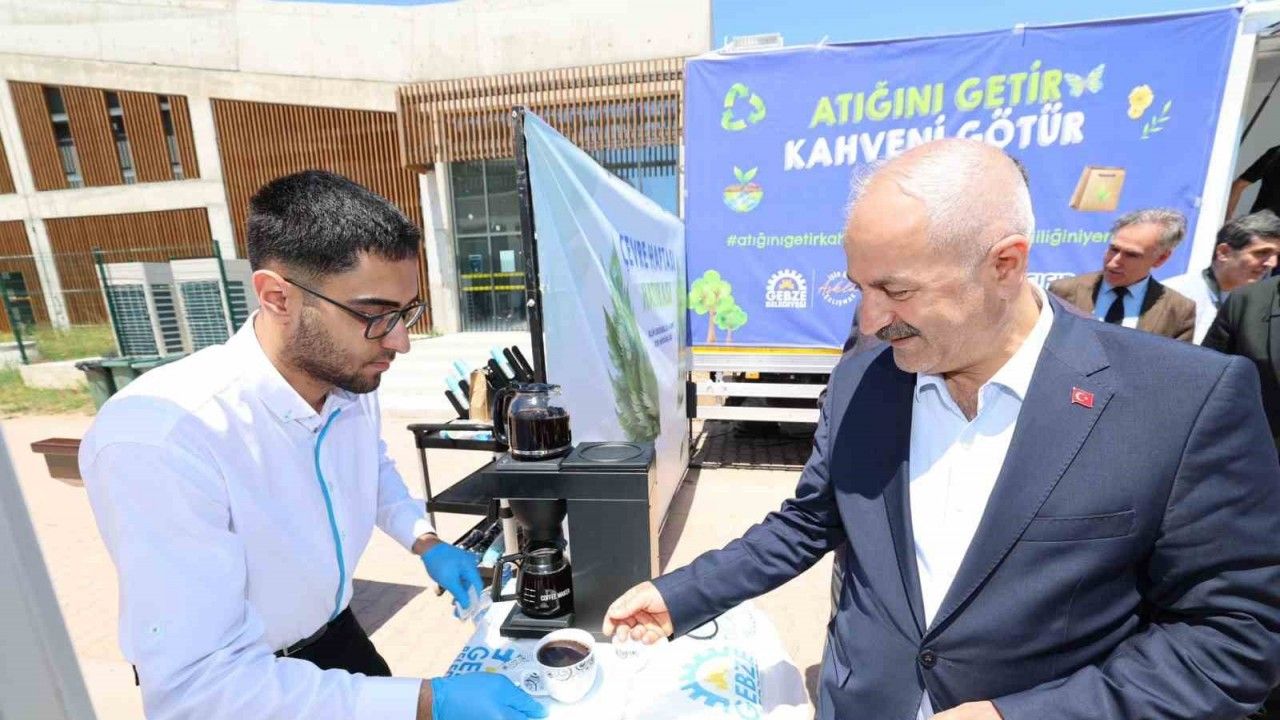 Gebze’de atıklarını getiren öğrenciler, geri dönüşüme katkı sağladıkları için ücretsiz kahve ikramı ile ödüllendiriliyor.