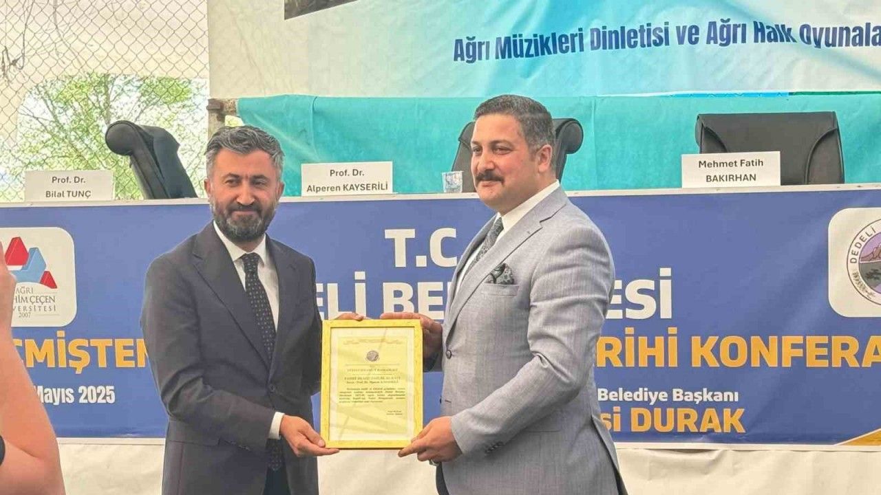 Başkan Durak ; "Bugün beldemiz için tarihi ve coğrafi önemi olan tamamen bir sohbet esnasında gelişen bir ortamda bu konferansa kara verildi. Dedeli’nin derinlemesine incelenmesini sağlayacağımız Ağrı’da bölgemizde ilk defa bu kadar geniş tarihi bir açılımı yapacağız inşallah. Böylesine bir yerin tarihini ve yerini bilmek çok önemlidir. İlleri, ilçeleri ve evleri yaşam alanı kılan içindeki binalar ve yapılar değil o bölgenin o bölgenin tarihi birikimi kültürü sanatı ve edebiyatı edebi eserleri şiirleri ve inançlarıdır. Bu kapsamda Ağrı İbrahim Çeçen Üniversitesi Tarih Bölümü Dekanı, hocalarımız ve katılımcılara teşekkür ederim" dedi.