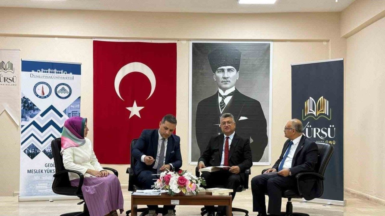 Başkan Akel, "Kürsü Okuma Kulübü’nün katkılarıyla, Kütahya Dumlupınar Üniversitesi Rektörü Prof. Dr. Süleyman Kızıltoprak’ın konuşmacı olarak yer aldığı ‘Düşüncenin Kürsüsünde Buluşalım’ programına katılım sağladık. Etkinlikte Evelyn Baring’in kaleme aldığı ve Rektörümüz tarafından Türkçeye kazandırılan ‘Modern Mısır’ adlı eser üzerine değerlendirmelerde bulunuldu. Gediz Meslek Yüksekokulumuzda gerçekleştirilen bu verimli buluşmada, değerli fikir ve tecrübelerini bizlerle paylaşan Sayın Rektörümüze ve Kürsü Okuma Kulübü’ne teşekkür ediyorum" ifadelerini kullandı.