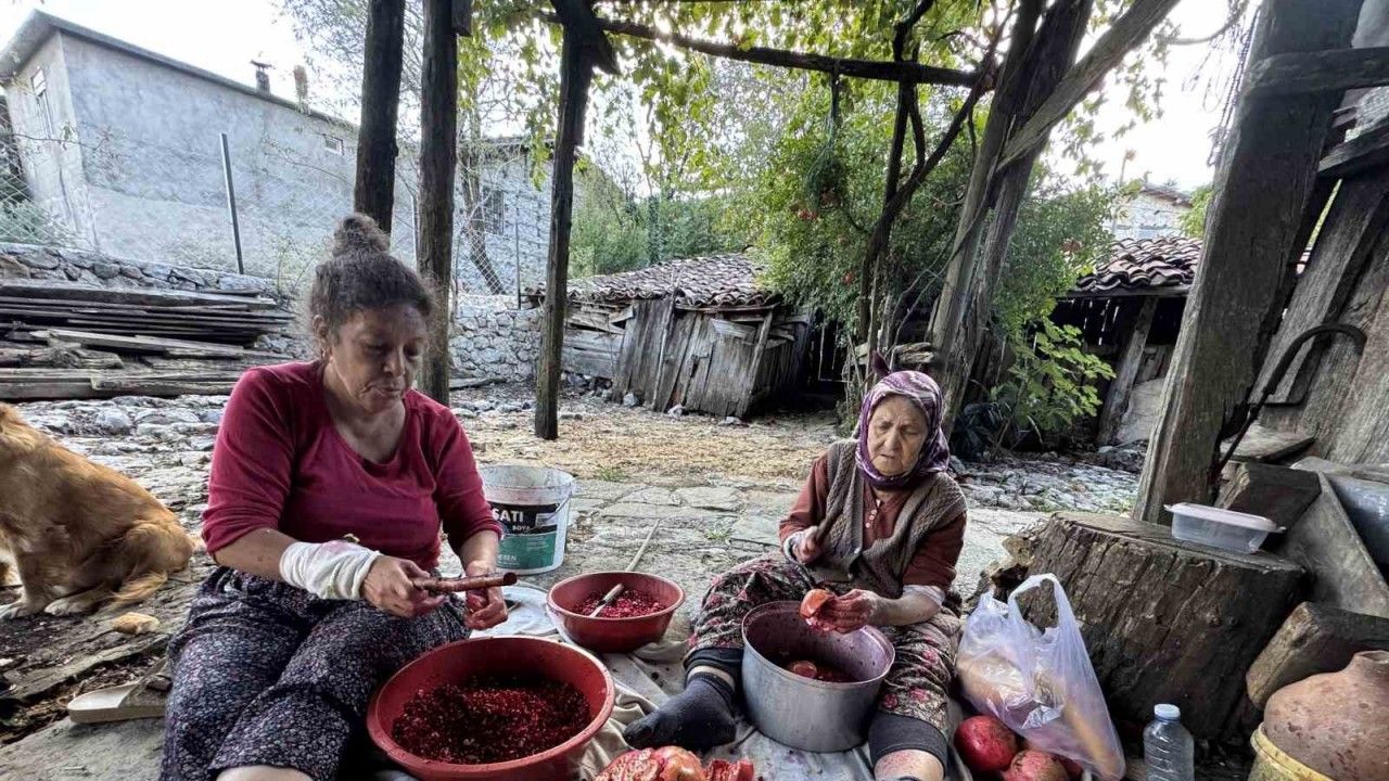 Antalya’nın Akseki ilçesinde ev hanımları, hem sofralara lezzet katmak hem de aile bütçesine katkı sağlamak için geleneksel yöntemlerle nar ekşisi üretimine başladı. Zorlu bir süreçten geçerek hazırlanan doğal nar ekşisi, kilogramı 600 liradan alıcı buluyor.