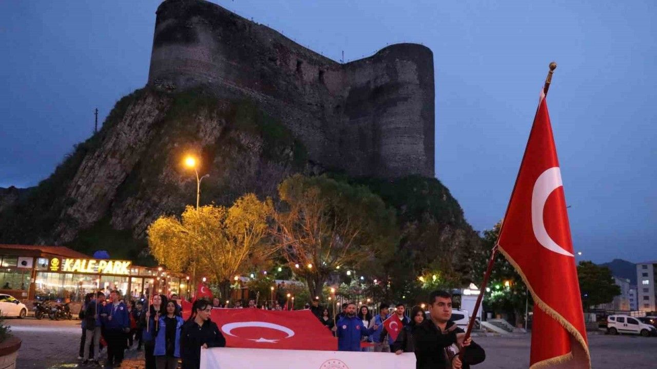 Erzurum’un Oltu ilçesinde 19 Mayıs Atatürk’ü Anma, Gençlik ve Spor Bayramı etkinlikleri kapsamında Gençlik Merkezi Müdürlüğü üyesi gençler, ellerinde Türk bayrakları ve yaktıkları meşalelerle anlamlı bir yürüyüş gerçekleştirdi.